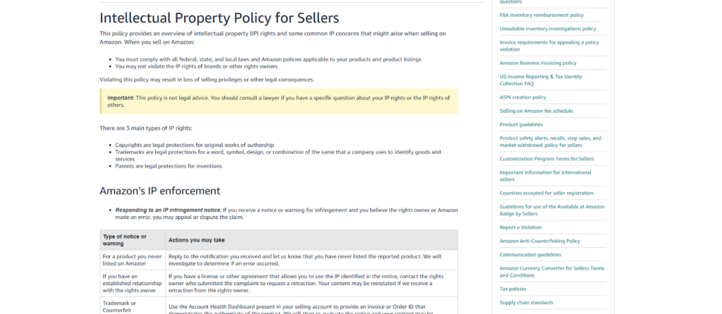 Amazon recognizes several types of IP violations: