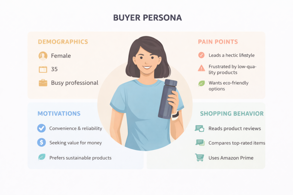 If your product is an eco-friendly water bottle, your target audience might include environmentally conscious consumers, outdoor enthusiasts, fitness advocates, or parents looking for safe kids’ products. Each segment uses a different language and searches differently.