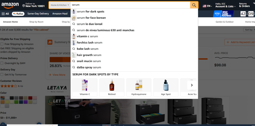 Imagine a customer searches for “vitamin C serum for dark spots” on Amazon. Amazon looks for listings whose keywords clearly match that intent. A serum listing that includes phrases like “vitamin C serum,” “dark spot correcting serum,” “brightening facial serum,” or “vitamin C face serum for hyperpigmentation” in the title, bullet points, description, or backend search terms will be considered highly relevant.