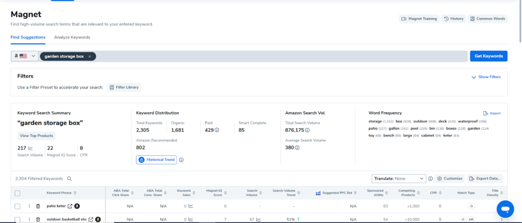 - Amazon Brand Analytics: If you’re brand-registered, the keyword phrase reports show exactly what customers search for in your category, including click share and conversion share data.