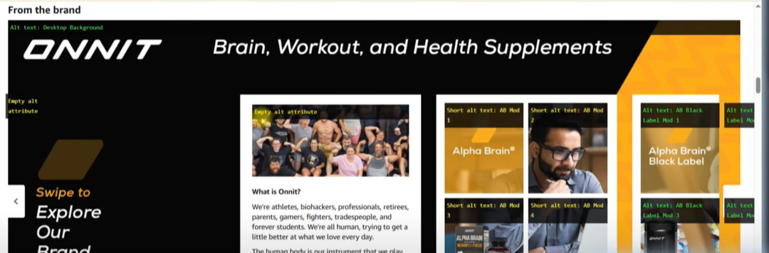 • Skipping alt text in your A+ content images means Amazon can’t index them.