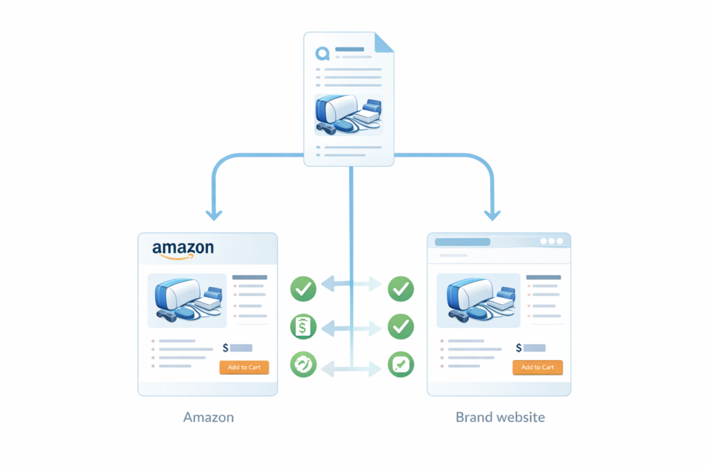 If Amazon finds conflict, the assumption is simple: Your website is your “most honest version” — so Amazon trusts it more.