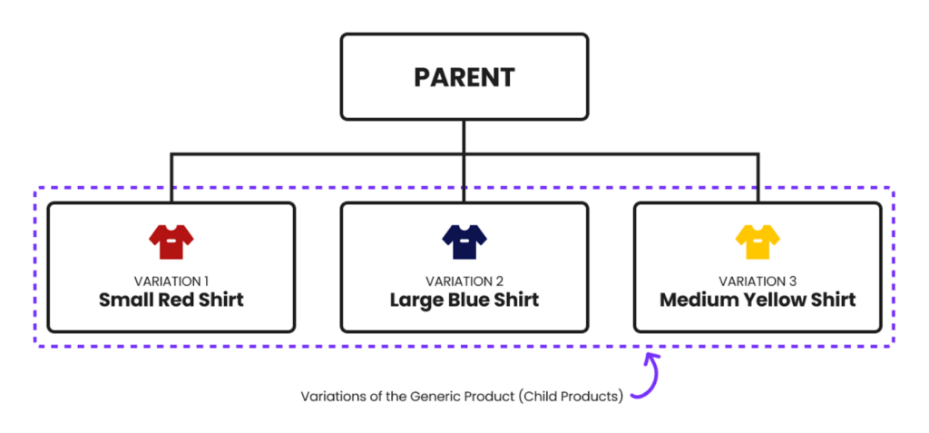 - Child Listing: Each variation (e.g., a specific size, color, or style) under the parent listing. These are the individual products customers can buy.