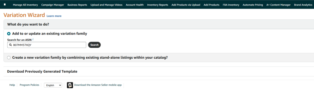 The Amazon Variation Wizard simplifies the process of adding variations to an existing product listing.