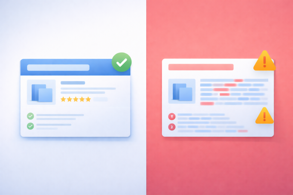 More keywords aren’t always better. Titles stuffed with keywords read unnaturally and can trigger content policy violations. Descriptions that repeat the same phrases sound robotic and hurt conversion.